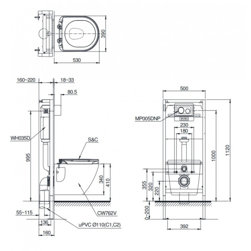 Bồn Cầu TOTO CW762/WH035D/MB005DCP Treo Tường