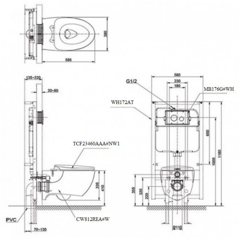 Bồn Cầu TOTO CW812REA#W TCF23460AAA#NW1 WH172AT TCA465 MB176G#WH Nắp Điện Tử Treo Tường