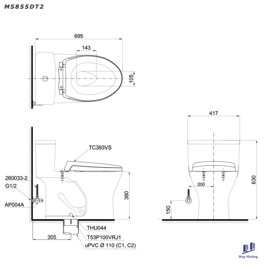 Bồn Cầu TOTO MS855DT2 Một Khối Nắp TC393VS