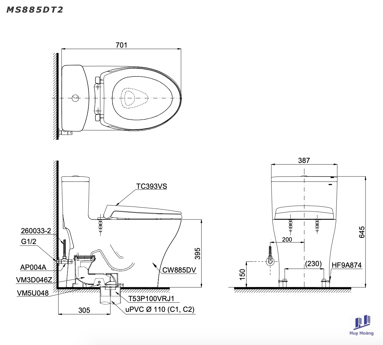 Bồn Cầu TOTO MS885DT2 Một Khối Nắp TC393VS