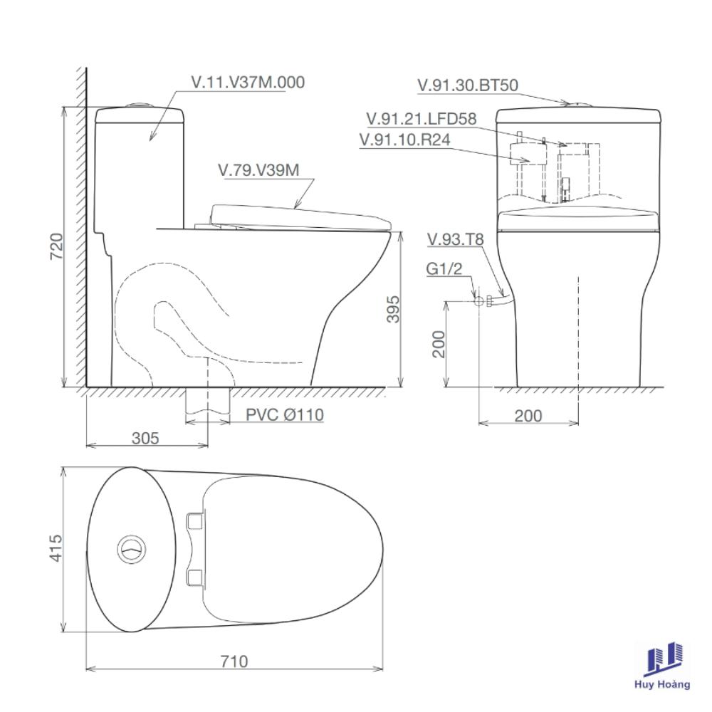 Bồn Cầu Viglacera V37M Xả Xoáy Nắp Êm V37 + Vòi Xịt VG826
