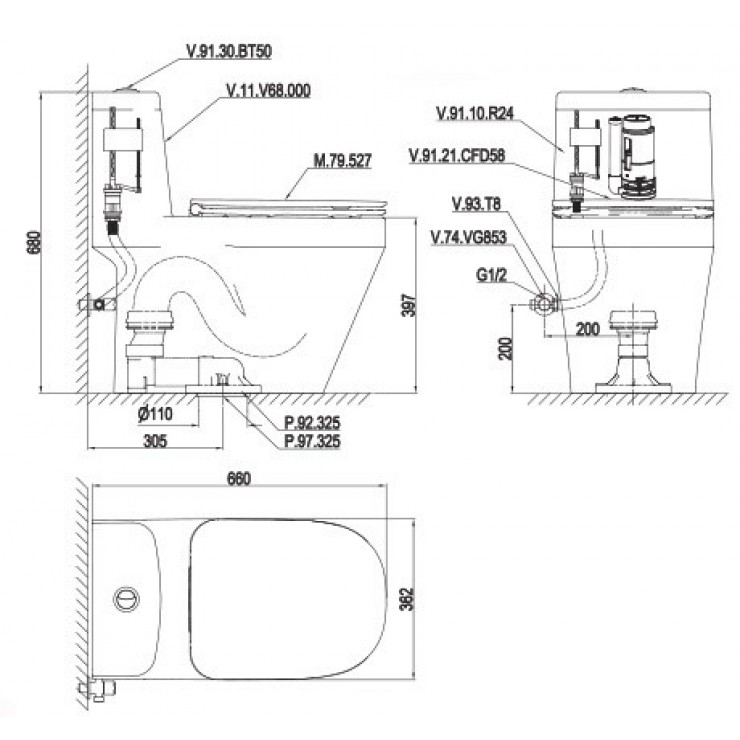 Bồn Cầu Viglacera V868 Xả Xoáy Nắp Êm M.97.527