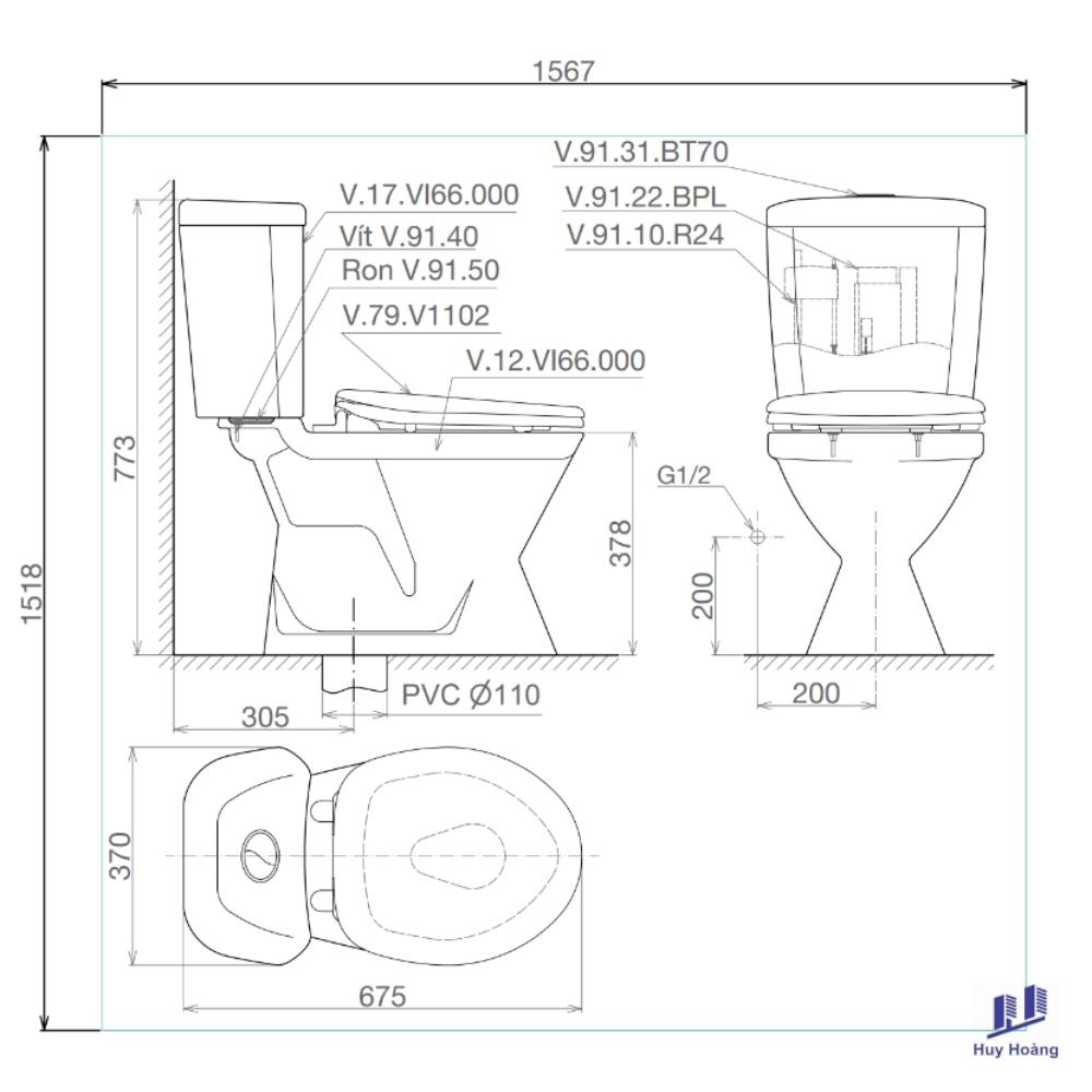 Bồn Cầu Viglacera VI66 2 Khối Nắp êm