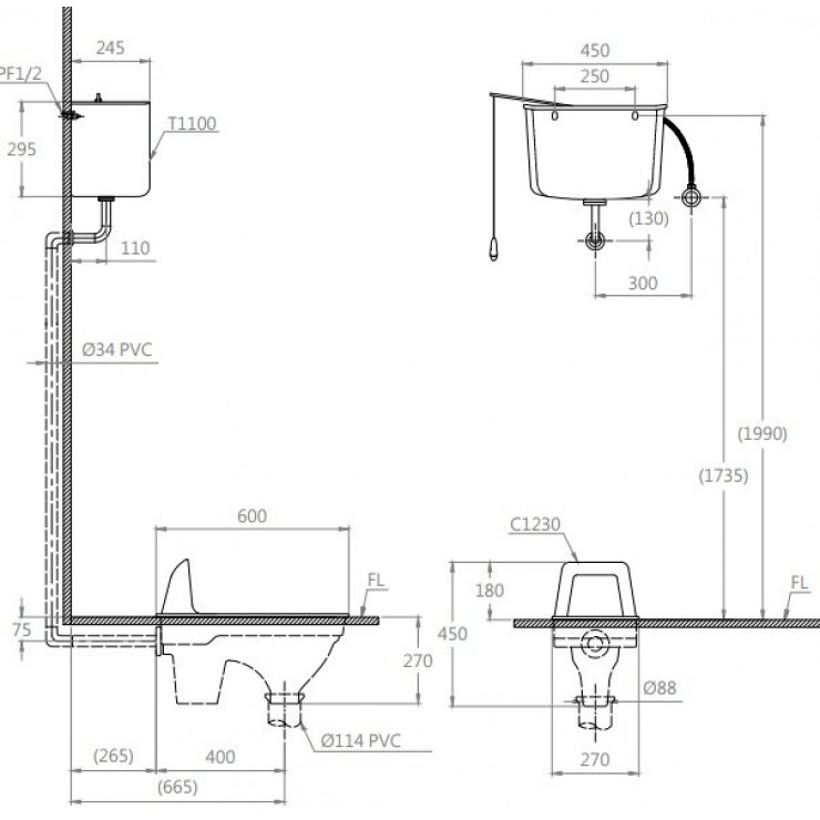 Bồn Cầu Xổm Caesar CS1230B (CS1230) Có Két Nước T1100