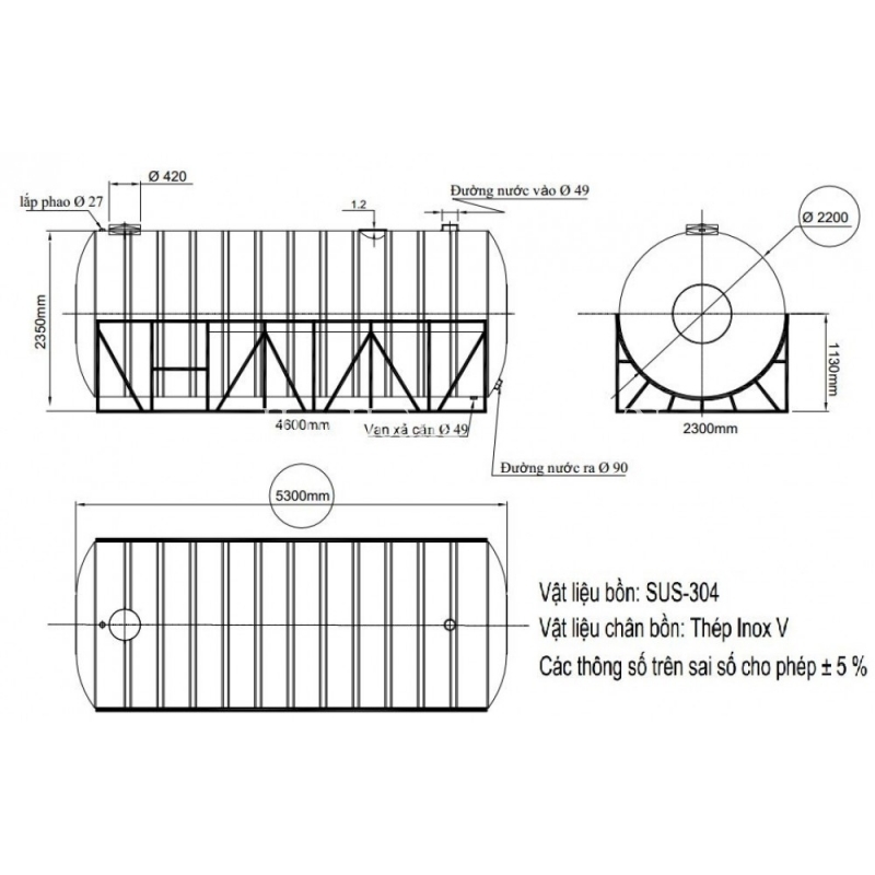 Bồn Nước Đại Thành Inox 20000L Ngang Ø 2,2m
