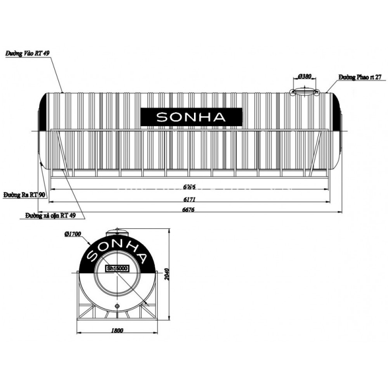 Bồn Nước Sơn Hà Inox 15000L Ngang SUS 304 Ø 1,7m