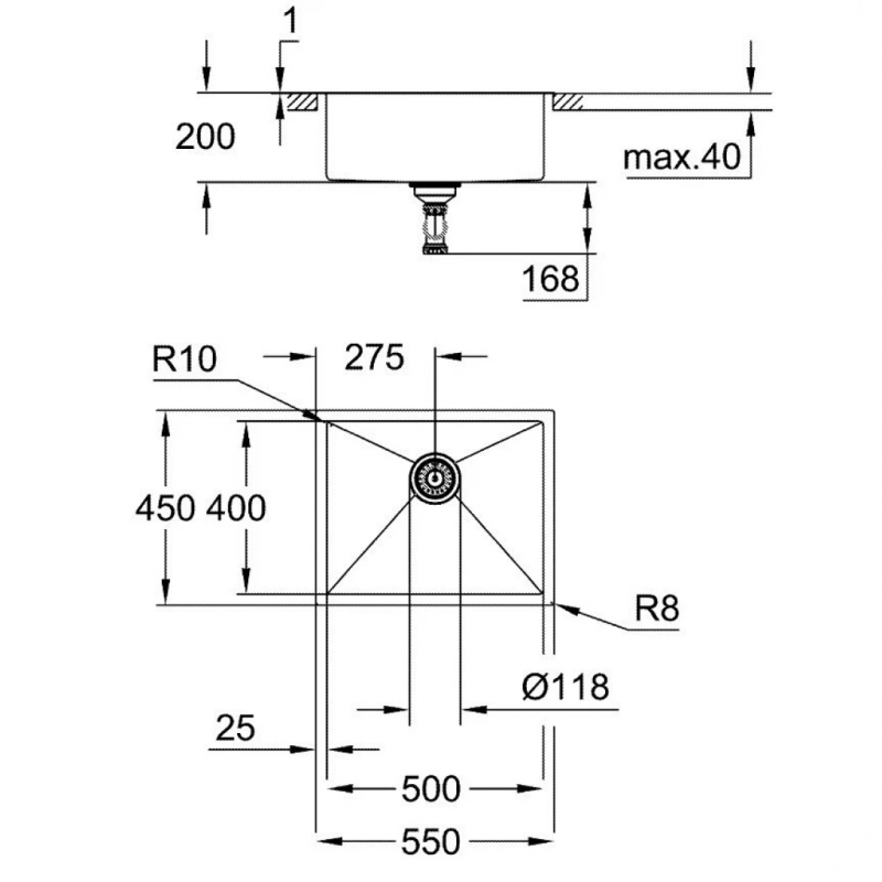Bồn Rửa Chén Grohe K700 31726SD0 1 Hộc Inox 304 550x450 mm