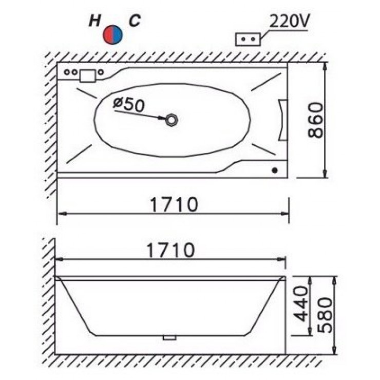 Bồn Tắm Caesar AT0870L/R 1.7 Mét Chân Yếm