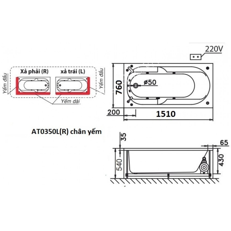 Bồn Tắm Chân Yếm 1.5M CAESAR AT0350L/R (Hết hàng)