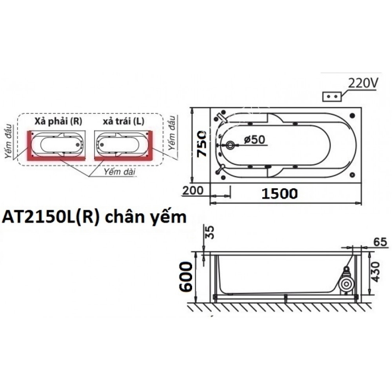 Bồn Tắm Chân Yếm Nằm 1.5M CAESAR AT2150L/R