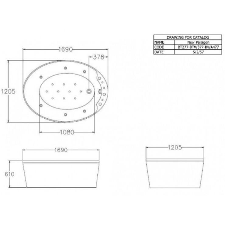 Bồn Tắm Cotto BWA477PP(H) WH Massage Sục Khí Đặt Sàn 1.7M
