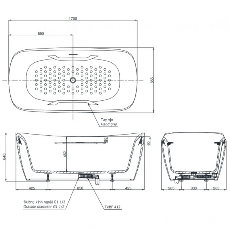 Bồn TắmBồn Tắm TOTOBồn Tắm Đặt SànBồn tắm GALALATO TotoBồn Tắm 1.7 Mét