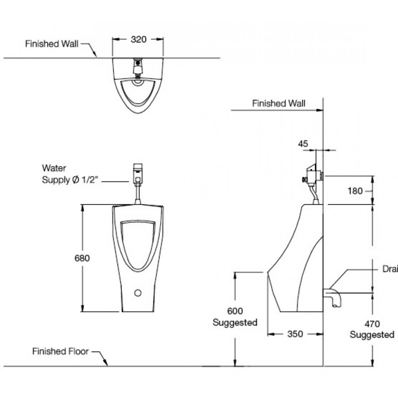 Bồn Tiểu Nam COTTO C31217 Riviera Treo Tường