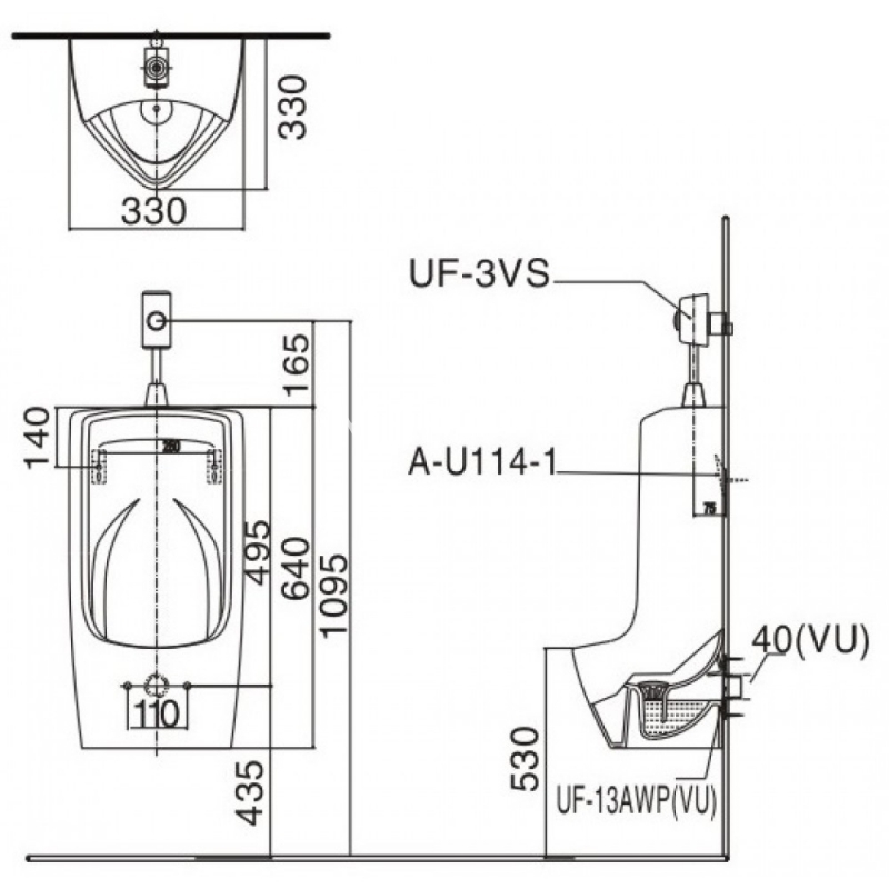 Bồn Tiểu Nam Inax AU-431VR Treo Tường AquaCeramic