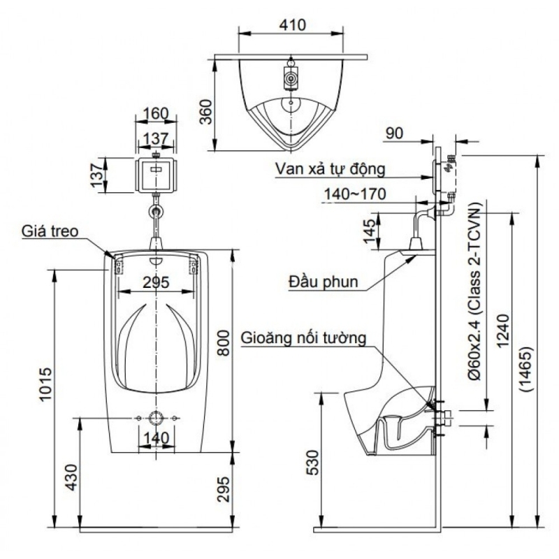 Bồn Tiểu Nam Inax U-411V Treo Tường