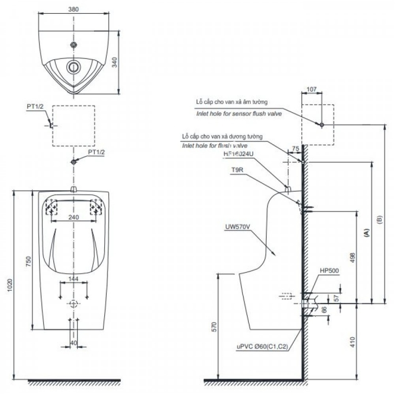 Bồn Tiểu Nam TOTO UT570T Treo Tường