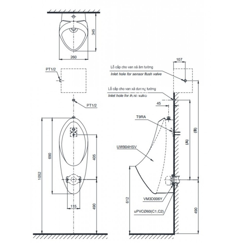 Bồn Tiểu Nam TOTO UT904N#XW Treo Tường