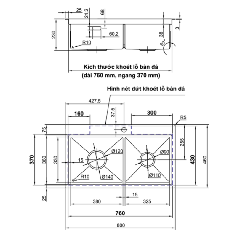Chậu rửa chén INOX SUS 304Chậu rửa chén Luxta