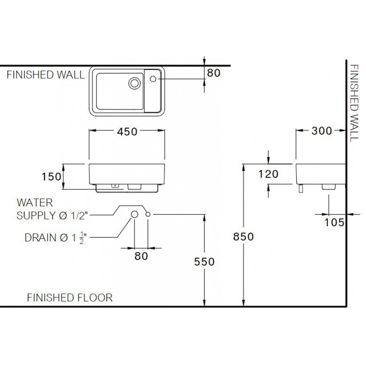 Chậu Lavabo COTTO C00657 Treo Tường 450x300 mm Nhỏ