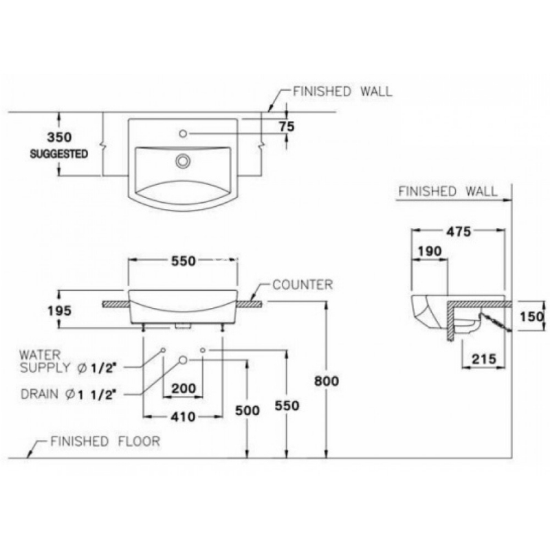 Chậu Lavabo COTTO C02427 Tetragon Bán Âm Bàn