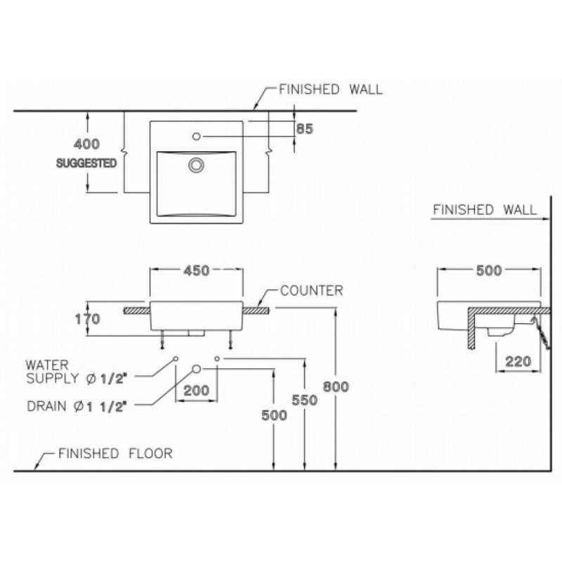 Chậu Lavabo COTTO C02717 Parvis Bán Âm Bàn