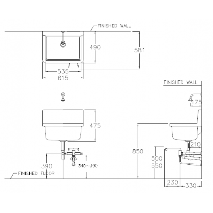 Chậu Lavabo Dịch Vụ COTTO C2400 Treo Tường