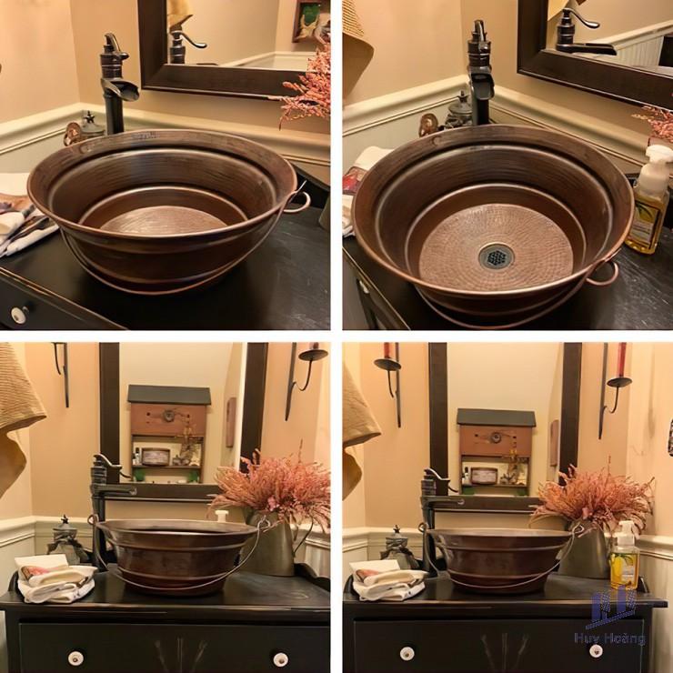 Chậu rửa bằng đồng cổ điển thủ công Việt Nam KanLy