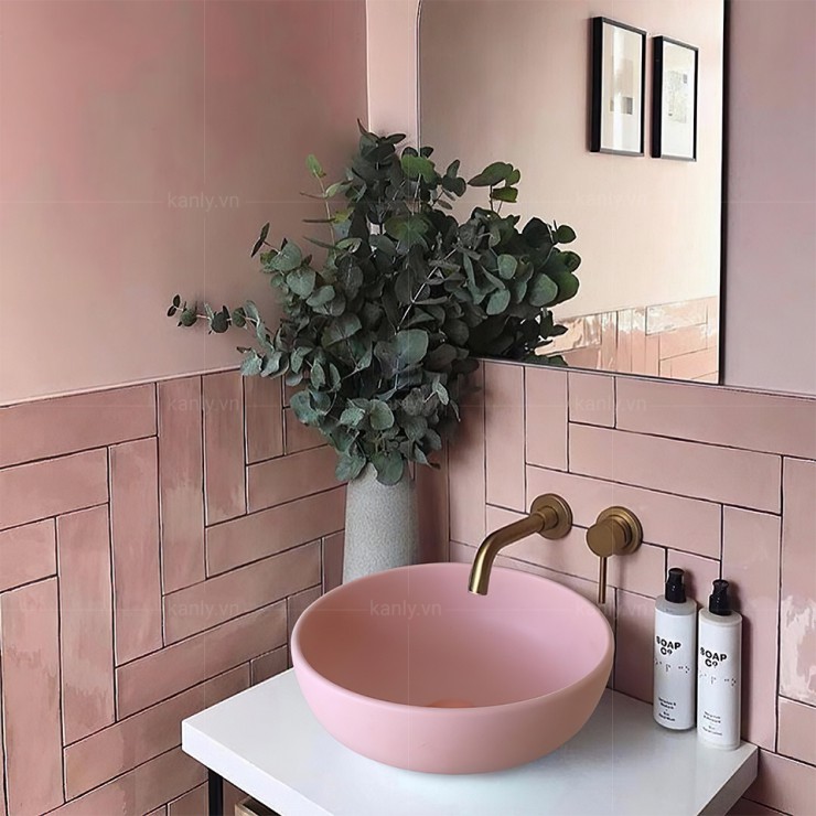 Lavabo sứ màu hồng Pastel mờ mịn, thể hiện nét thanh lịch, dịu dàng và sang trọng, phù hợp với những ý tưởng thiết kế không gian kiến trúc theo phong cách Millennial Pink, Colour-Block…