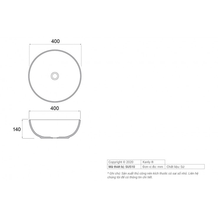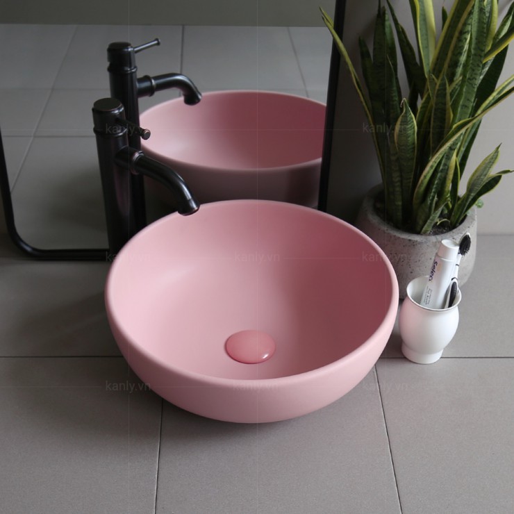 Chậu Lavabo Kanly SU510 Đặt Bàn Sứ Tròn Màu Hồng 400x140 mm