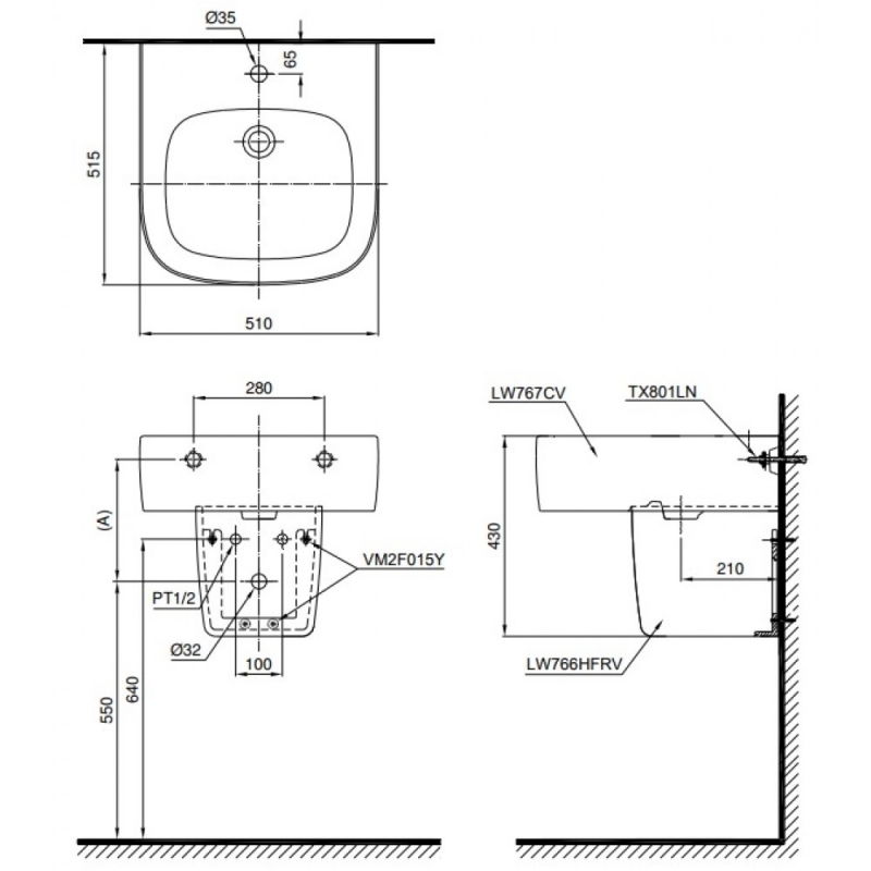 Chân chậu lửng: L766HF