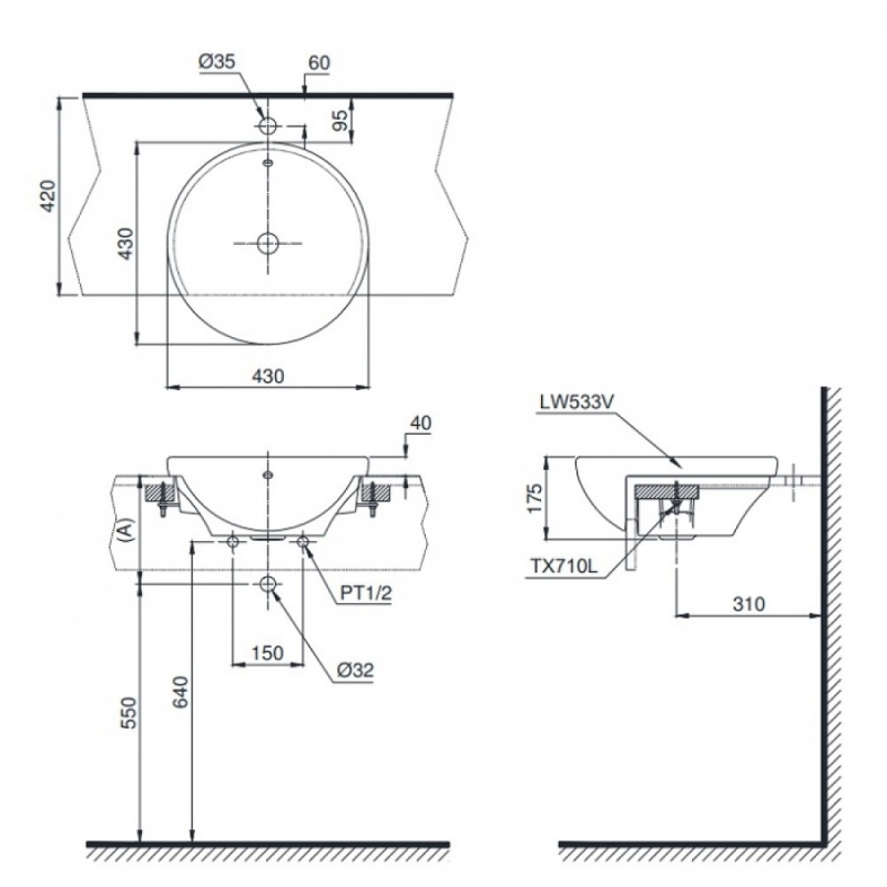 Gợi ý vòi nước kết hợp: Vòi nóng lạnh (đã gồm chặn nước và dây cấp) TLS02303V, TLS01304V, TLG04304V, ...- Ống thải nước: TVLF401