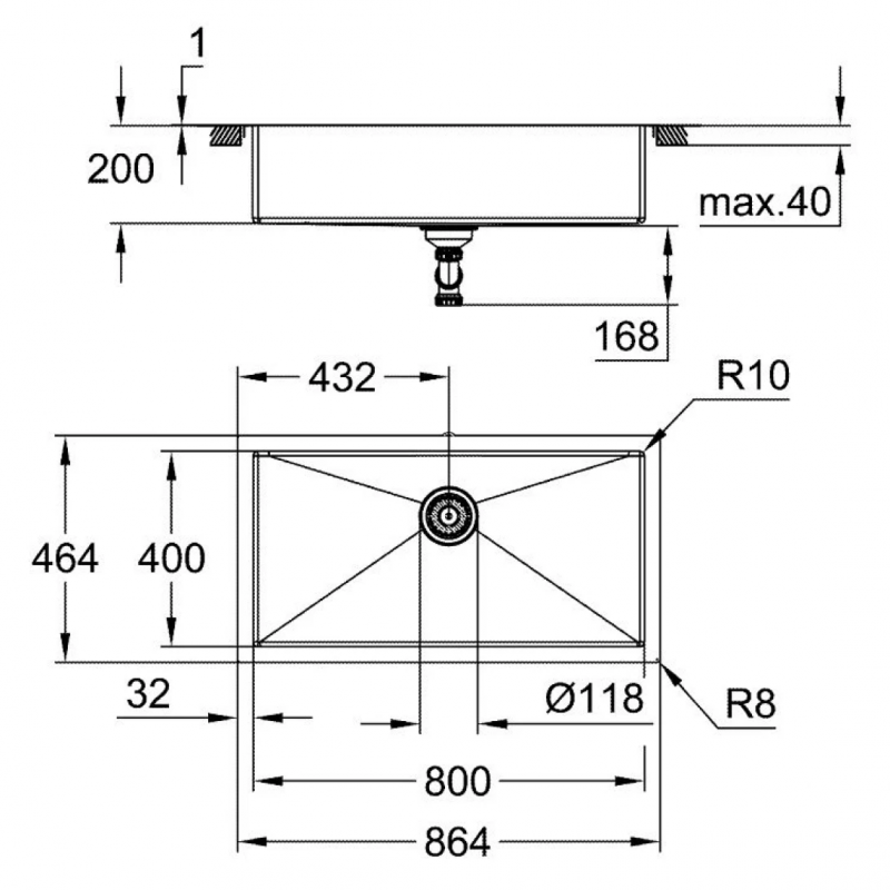 Chậu Rửa Chén Grohe AISI 304 K700 31580SD1 1 Hộc 864x464mm