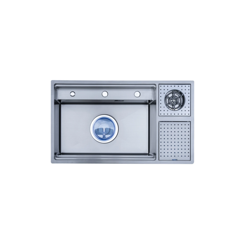 Chậu rửa bát 1 hố Nobinox LUMIA NJ510B từ bộ sưu tập Lumia là lựa chọn sáng tạo cho không gian bếp hiện đại. Sản phẩm được sản xuất từ inox 304 cao cấp, kết hợp công nghệ xử lý bề mặt PVD đen tạo nên vẻ ngoài sang trọng, huyền bí cùng khả năng chống bám vân tay và chống xước vượt trội. Điểm đặc biệt tạo nên sự khác biệt của chậu là một phần rửa cốc riêng biệt và tiện lợi được tích hợp ngay tại một góc chậu, giúp việc làm sạch các ly, cốc cao trở nên dễ dàng và tránh va chạm hơn.