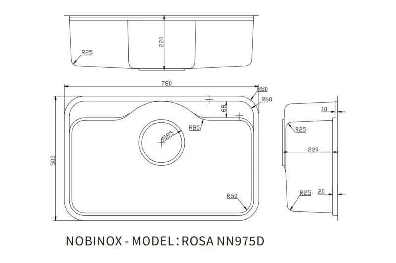 NOBINOX ROSA NN975D được thiết kế với đường bo góc tròn R50 rộng và mềm mại, mang lại những lợi ích vượt trội so với các góc vuông truyền thống. Đường cong này loại bỏ hoàn toàn các ngóc ngách hẹp, giúp việc vệ sinh trở nên dễ dàng và nhanh chóng, ngăn chặn sự tích tụ của vi khuẩn và cặn bẩn. Đồng thời, thiết kế bo góc R50 còn đảm bảo an toàn tối đa cho người sử dụng, hạn chế tối đa nguy cơ va đập và tổn thương khi thao tác trong không gian bếp. Đây là sự kết hợp hoàn hảo giữa tính thẩm mỹ hiện đại, sự an toàn và khả năng vệ sinh tối ưu, mang đến trải nghiệm sử dụng đẳng cấp cho mọi gia đình.