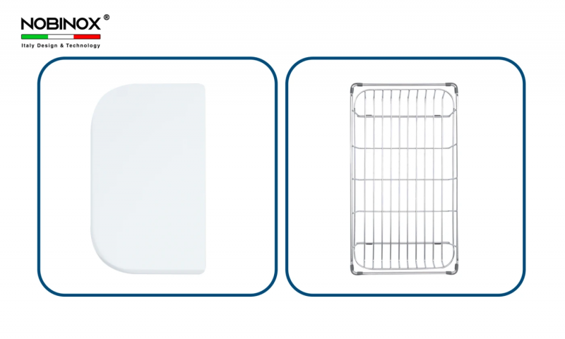 Nobinox ROSA NN995D được trang bị thêm bộ phụ kiện bao gồm thớt nhựa và rổ inox mang đến giải pháp toàn diện cho mọi nhu cầu sử dụng. Thớt nhựa an toàn vệ sinh, cho phép bạn sơ chế thực phẩm trực tiếp trên bồn rửa một cách tiện lợi. Rổ inox là nơi úp chén bát hoặc thực phẩm giúp không gian bếp luôn khô ráo và gọn gàng. Với bộ phụ kiện đi kèm này, mọi thao tác trong bếp trở nên nhanh chóng, hiệu quả và đầy đủ tiện nghi, mang đến trải nghiệm hoàn hảo cho người nội trợ.