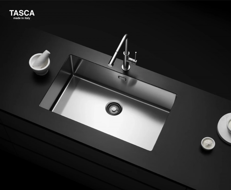 Chậu rửa bát TASCA PURA NT670U thấm nhuần triết lý thiết kế tối giản, thanh lịch đặc trưng của Ý. Chậu có hình dạng hình chữ nhật với các đường nét thẳng, dứt khoát, không hề có bất kỳ chi tiết trang trí rườm rà nào. Các góc cạnh được bo tròn tinh tế một cách nhất quán (công nghệ góc lượn R12), tạo nên tổng thể mềm mại, thanh thoát và cực kỳ hiện đại. Sự tối giản này thể hiện ở việc lỗ thoát tràn và bát rác được đúc liền nguyên khối với thân chậu, tạo ra một bề mặt phẳng hoàn toàn liền mạch, không có khe hở. Thiết kế này không chỉ nâng cao tính thẩm mỹ, tạo cảm giác gọn gàng, sạch sẽ, mà còn giúp chậu dễ dàng hòa hợp với mọi phong cách nội thất bếp, từ cổ điển, hiện đại đến Scandinavian, biến nó thành một điểm nhấn tinh tế, vượt thời gian cho không gian của bạn.