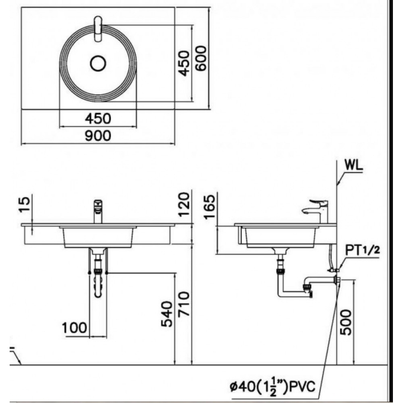 - Kích thước 450 x 450 x 165 mm