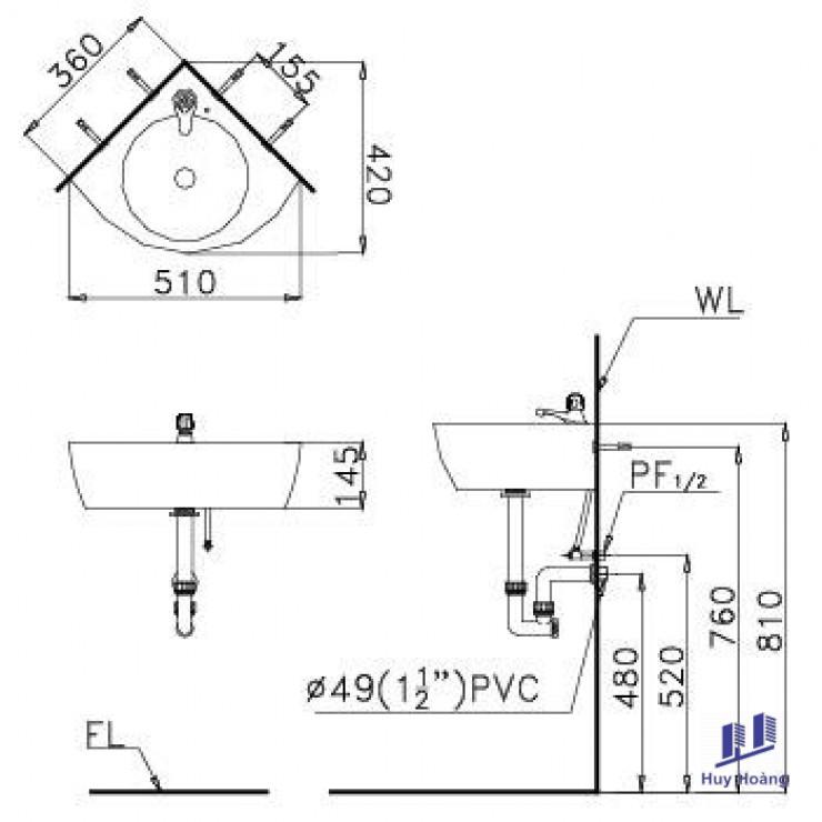 - Chậu rửa lavabo dạng góc treo tường của hãng thiết bị vệ sinh Caesar