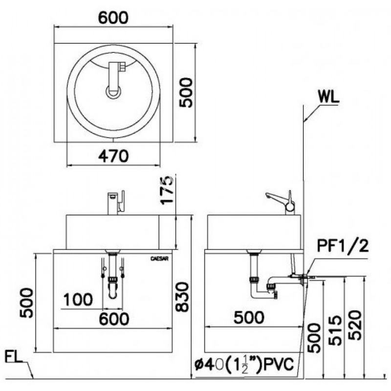 Chậu Rửa Lavabo CAESAR LF5240 Đặt Bàn Tròn