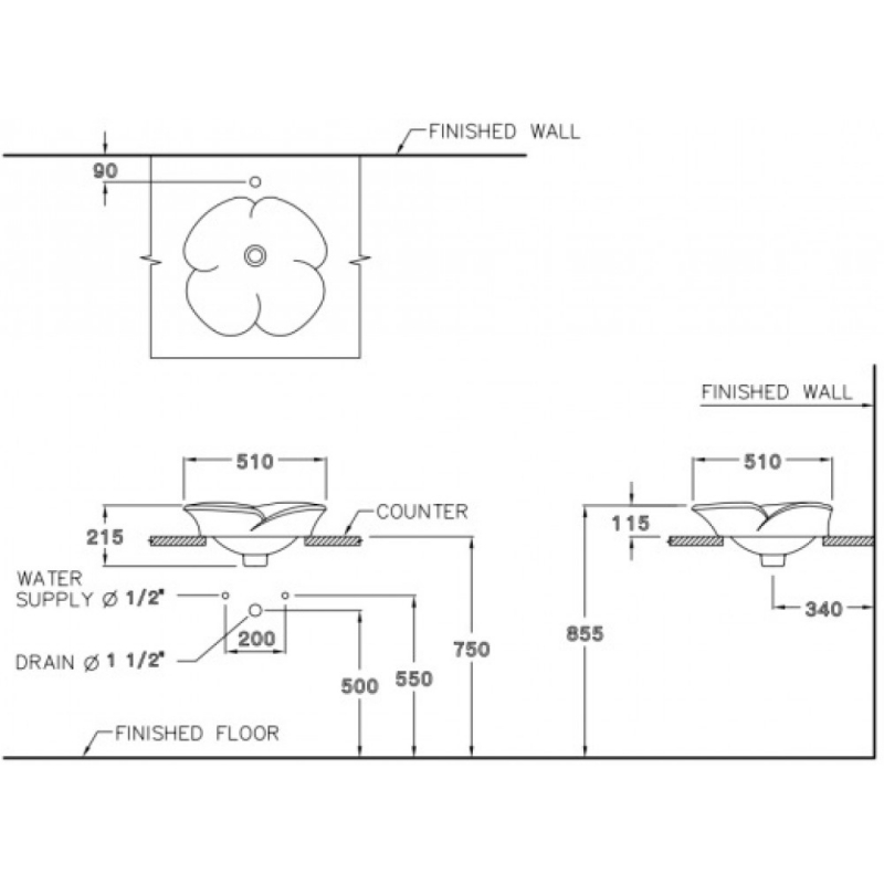 Bản vẽ kỹ thuật chậu lavabo đặt bàn Cotto C0004