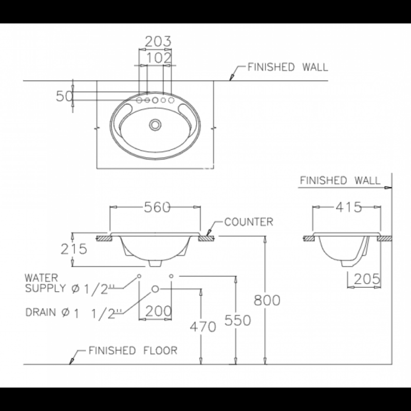 Chậu Rửa Lavabo COTTO C007 Âm Bàn Dương Vành
