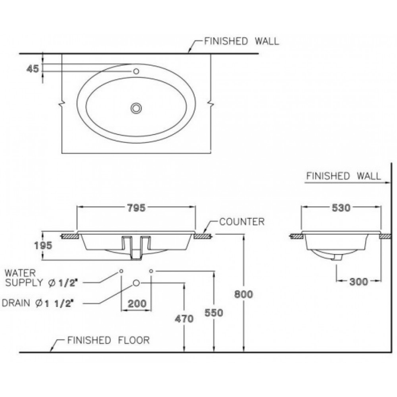 Chậu Rửa Lavabo COTTO C019 Ellipse Dương Vành