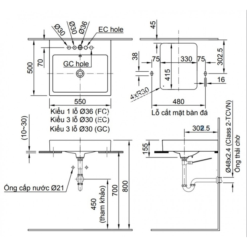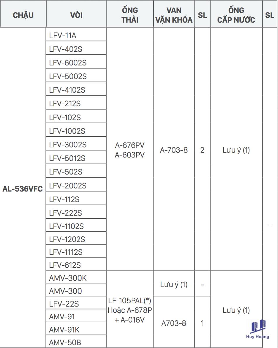 Thông tin cơ bản chậu rửa mặt Inax AL-536V