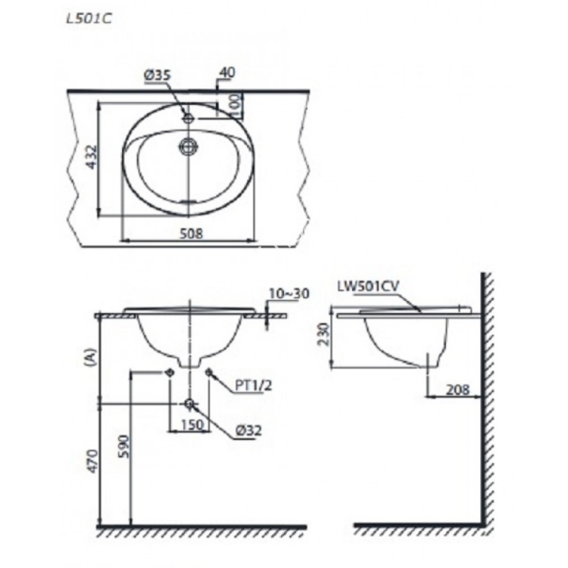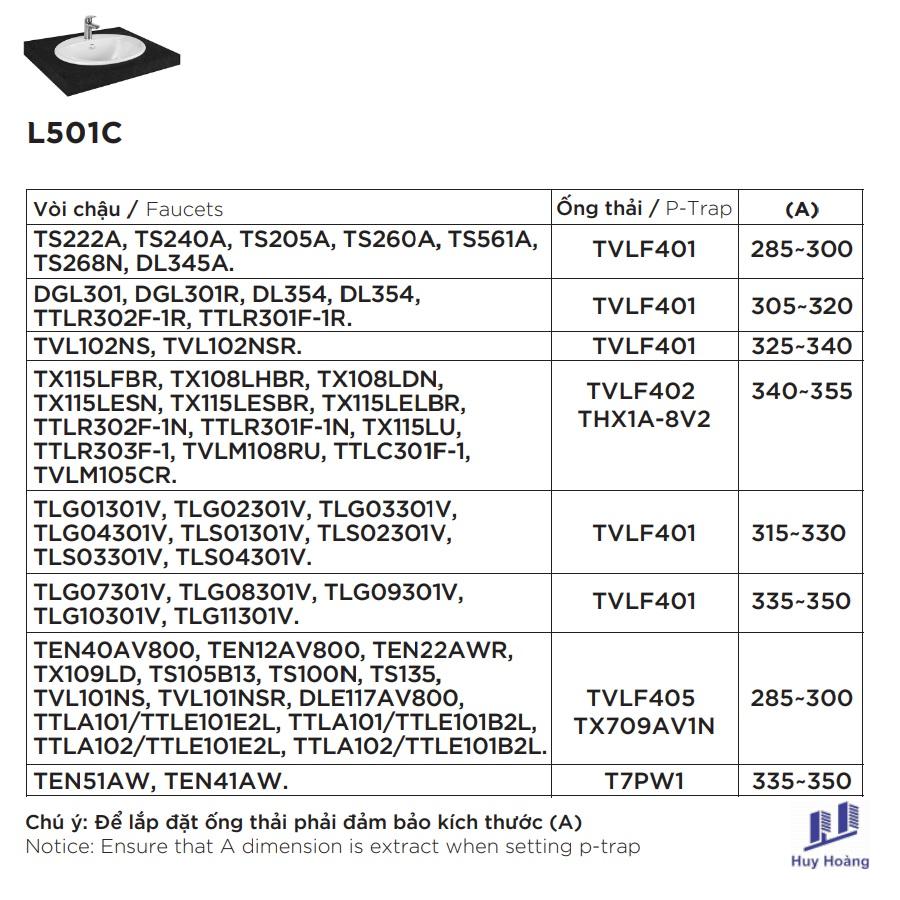 Chậu rửa lavavbo TOTO đặt dương vành L501C của hãng thiết bị vệ sinh TOTO