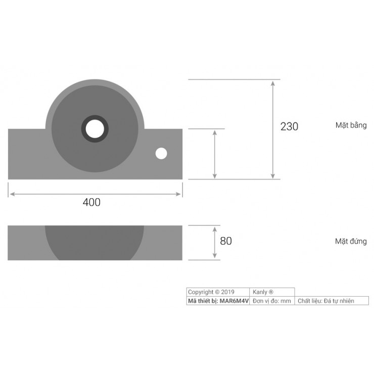 Chậu Rửa Mặt Lavabo Đá Kanly MAR6M2V Treo Tường Đá Tự Nhiên Màu Đen