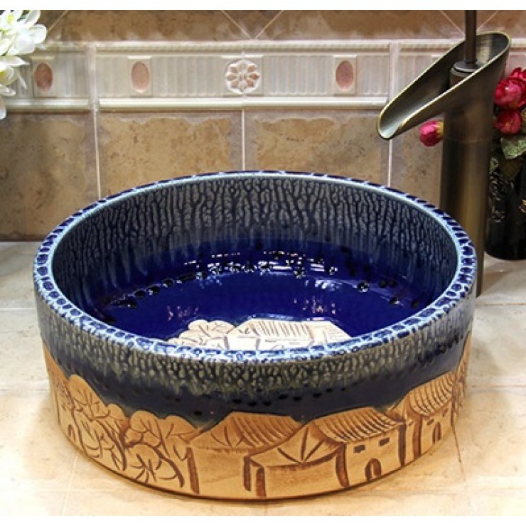 – Chậu rửa bằng gốm sứ sản xuất thủ công, chậu sứ mỹ thuật, có thể dùng như lavabo sứ để nổi trên mặt bàn, chậu rửa mặt đẹp, gốm sứ, màu sắc, hoa văn tao nhã.