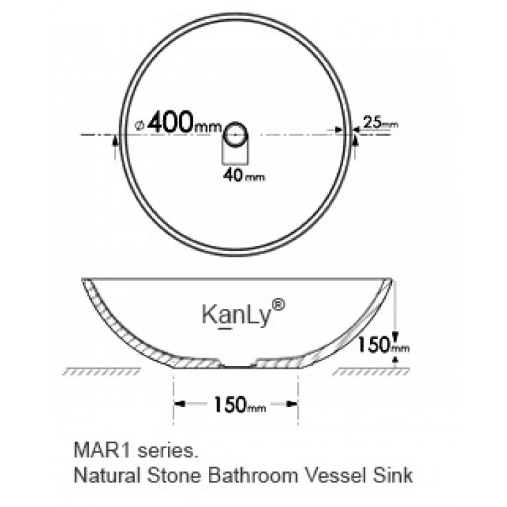 Chậu Rửa Mặt Lavabo Kanly MAR16N Đặt Bàn Đá Tự Nhiên 400x150 mm