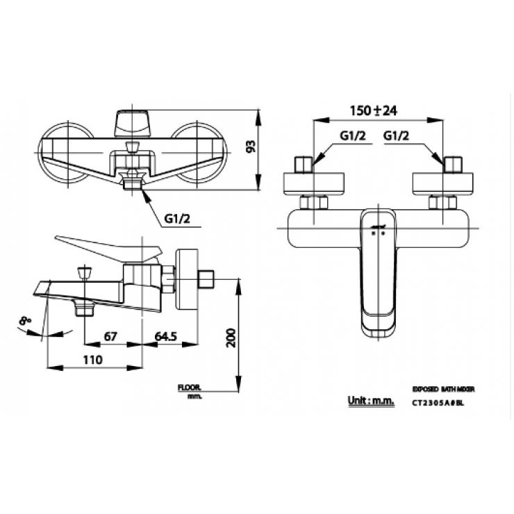 Củ Sen Tắm COTTO CT2305A#BL Xposh Nóng Lạnh Màu Đen