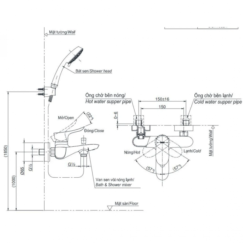 Củ Sen Tắm TOTO TBG01302VA Nóng Lạnh