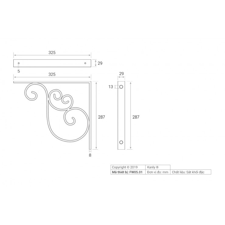 Giá Đỡ Eke Chậu Lavabo Mỹ Thuật Kanly FW05.01 Treo Tường